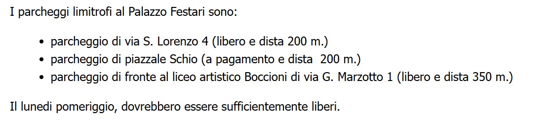 Parcheggi nei pressi di Palazzo Festari